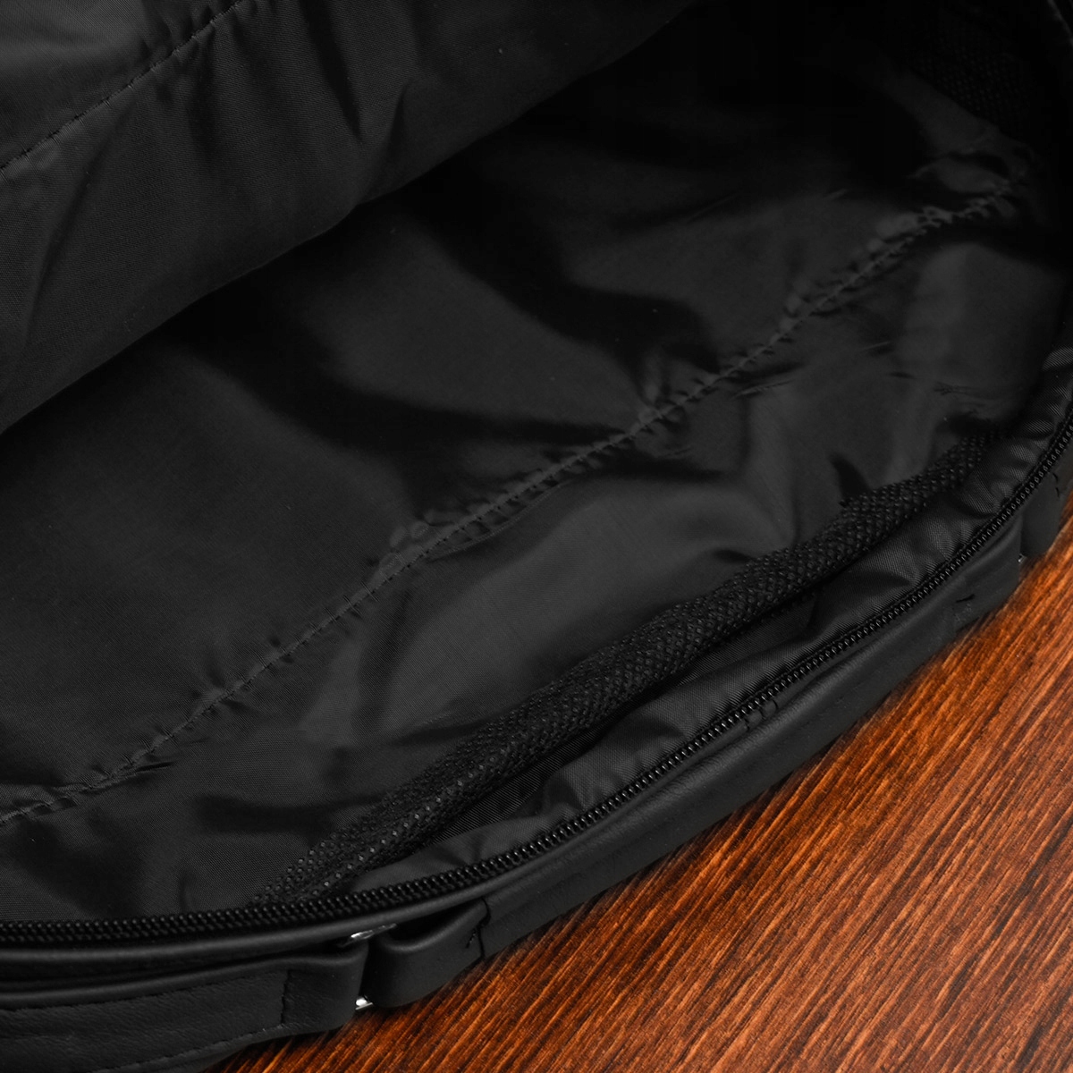 W środku wszyta jest elegancka, czarna podszewka. Łączenia skóry są elegancko wykończone.
