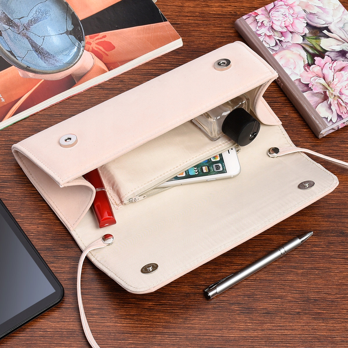Pudrowa zamszowa kopertówka wieczorowa — wyprodukowana w Polsce z wysokiej jakości pudrowego zamszu ekologicznego