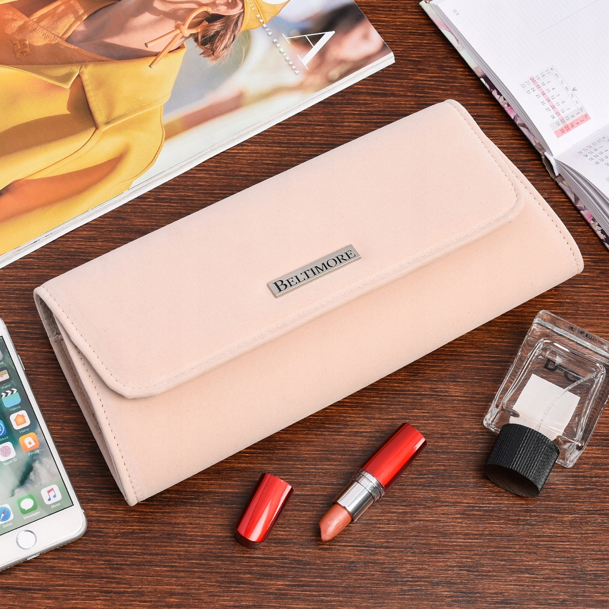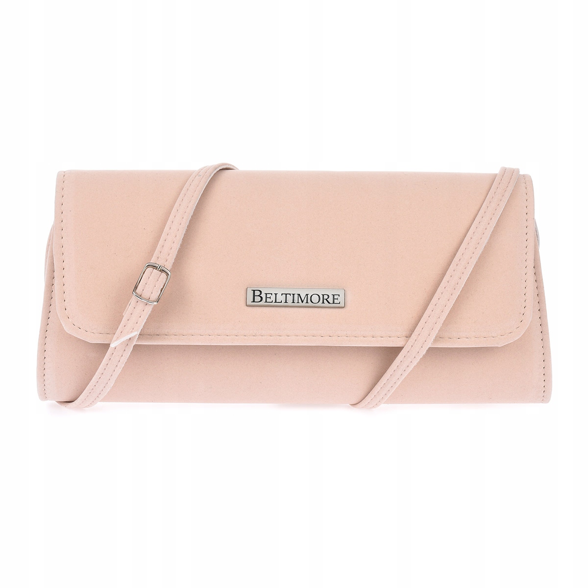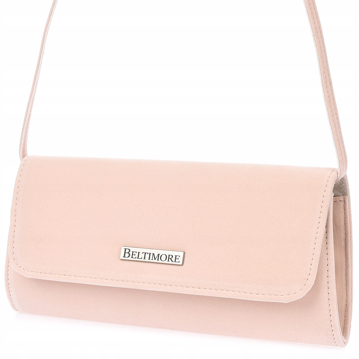 Pudrowa zamszoa kopertówka wieczorowa — najważniejsze cechy i parametry: