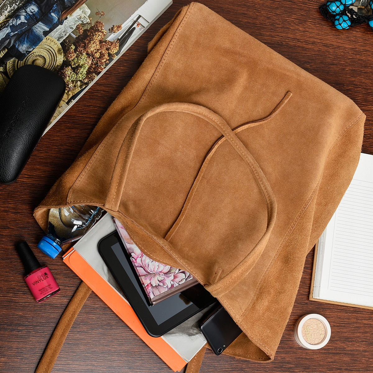 Zamszowy worek czerwony z naturalnej włoskiej skóry – miękka, lekka i wyrazista forma na co dzień