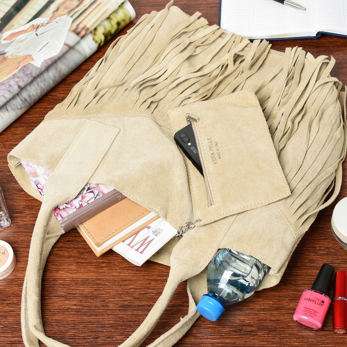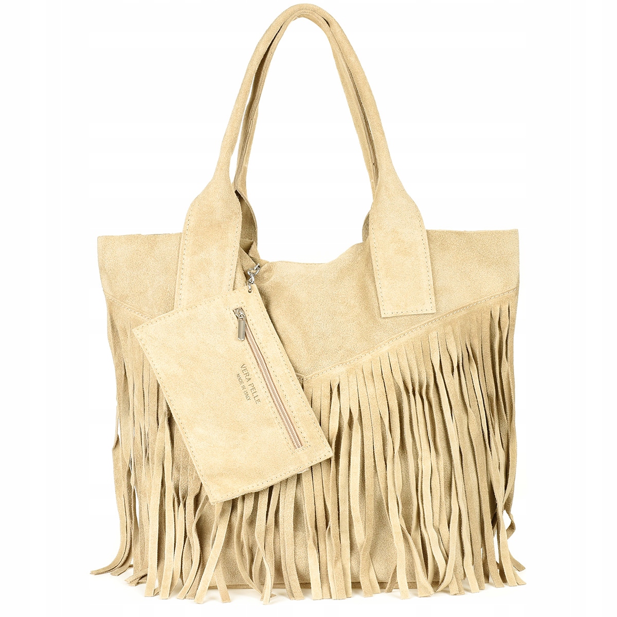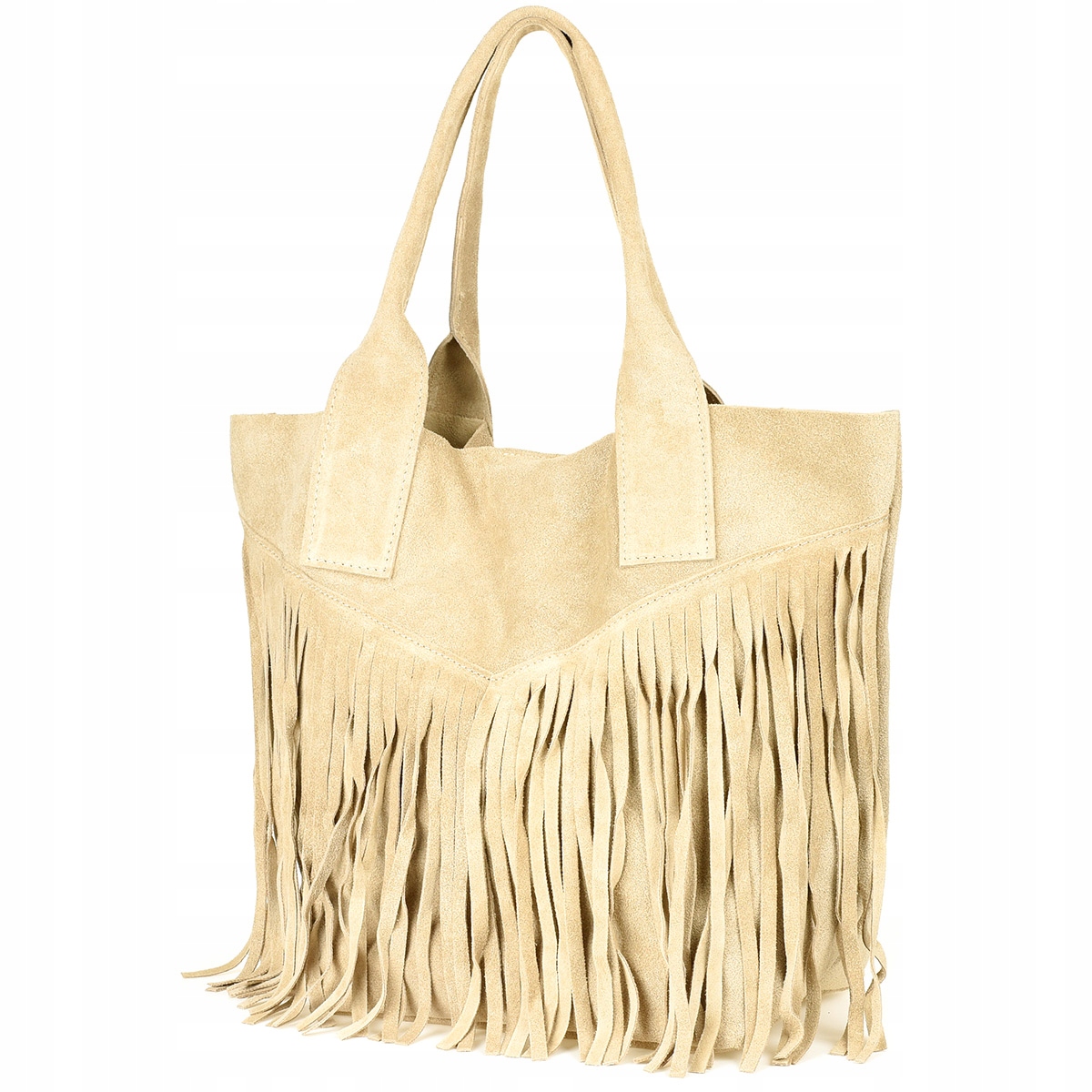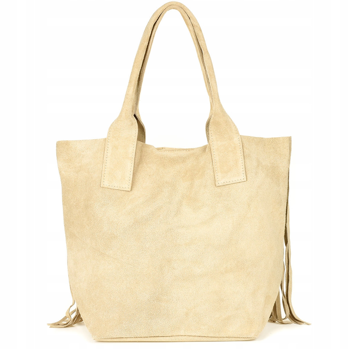 Shopperka zamszowa beżowa – miękka włoska torba ze skóry naturalnej.