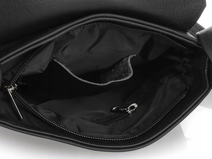 - Główna komora zamykana jest na klapę oraz zasuwana na zamek błyskawiczny, w środku dodatkowo dwie kieszenie, z czego jedna z nich jest zasuwana