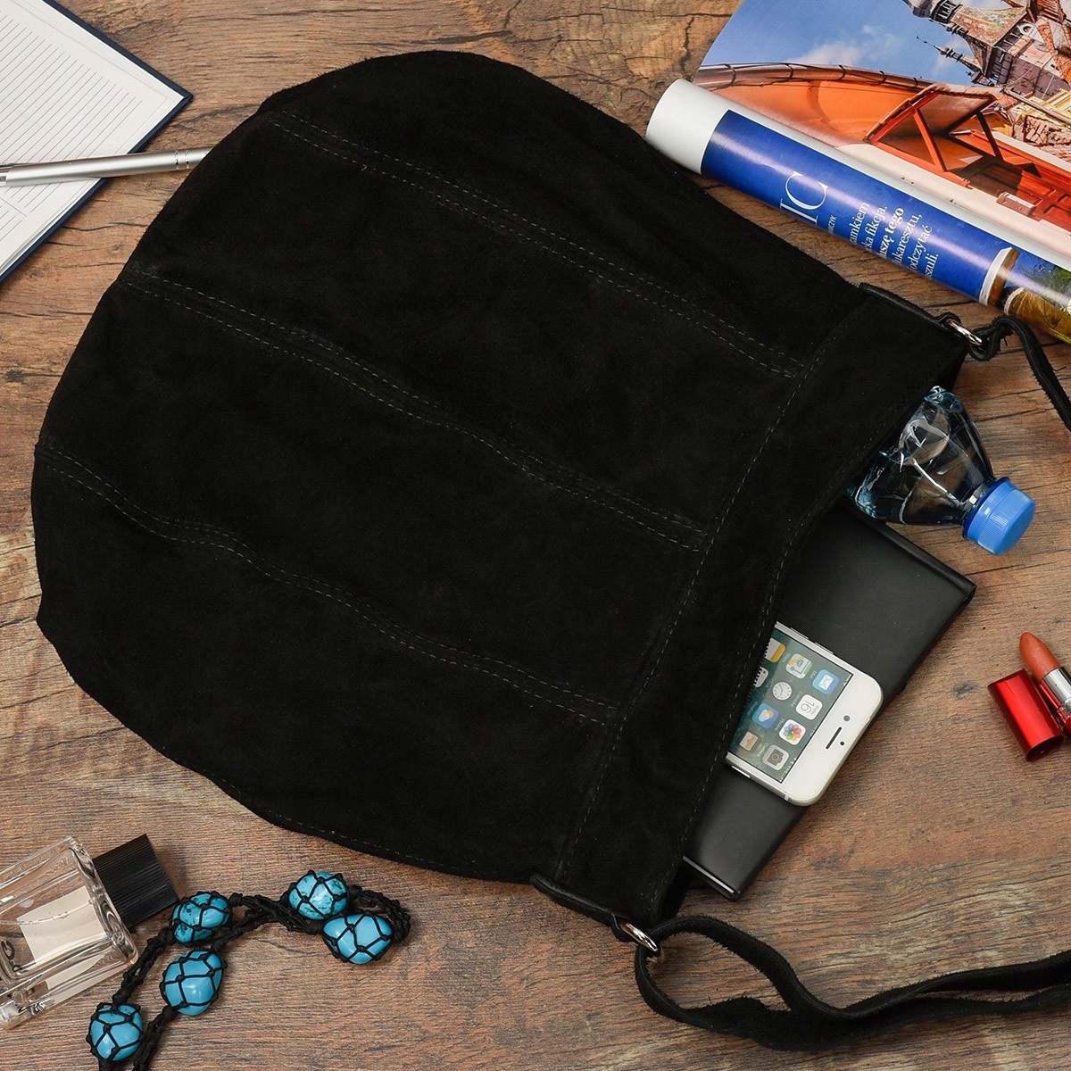 Zamszowa damska torebka A4 worek na pasek – styl i funkcjonalność