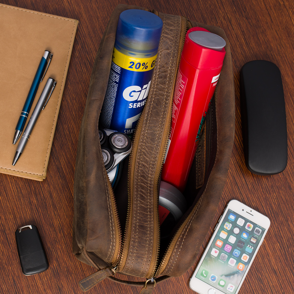 ✅ Kosmetyczka posiada dwie skórzane rączki, które umieszczone są po bokach