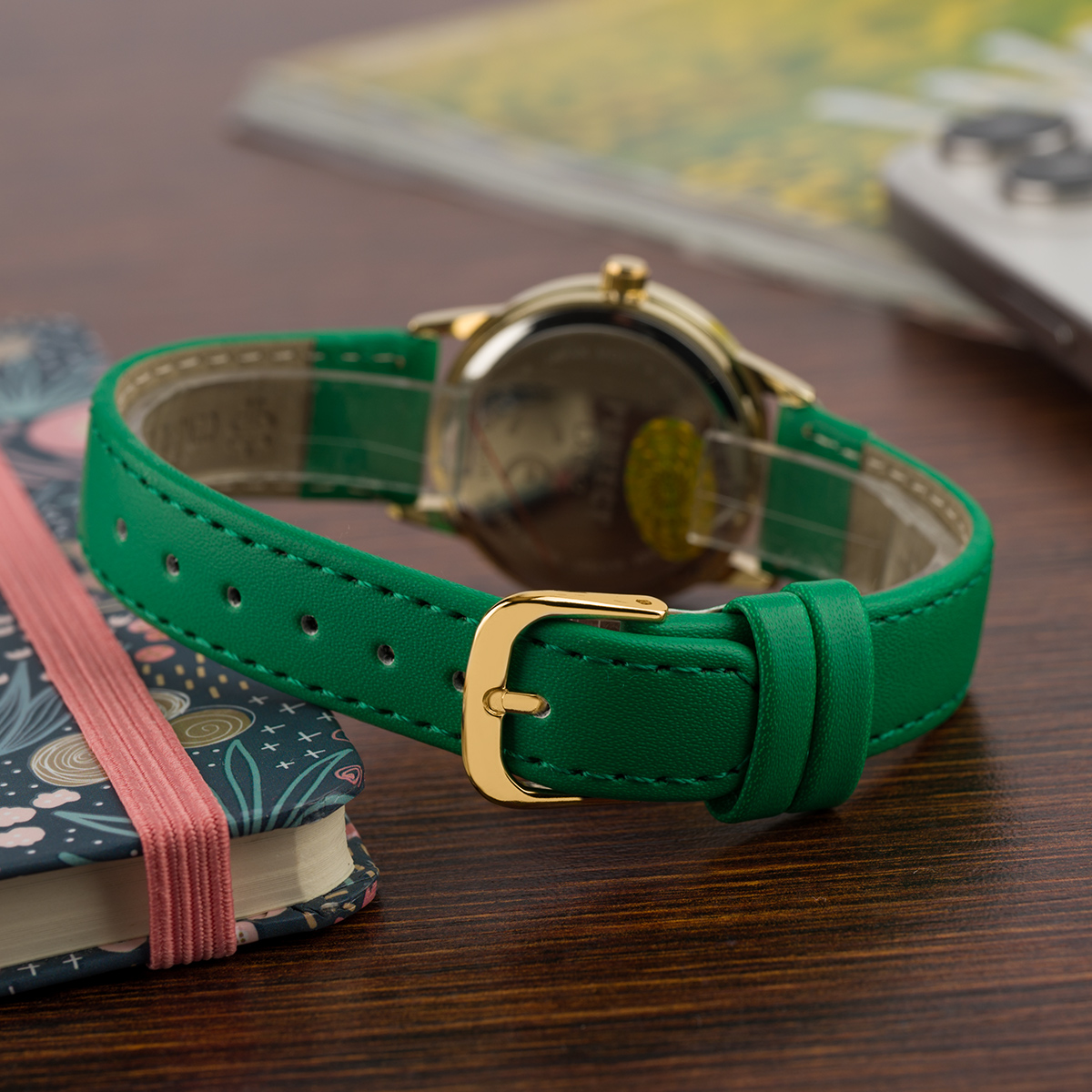 – mechanizm japoński- Miyota – nierdzewność – skórzany pasek – wodoszczelność 3 ATM- odporny na zachlapania np. podczas zmywania. Nie nadaje się do kąpieli, pływania – galwanizowane denko z sygnaturą marki i modelem zegarka – szkiełko mineralne – kwarcowy – baterie 626 SW – analogowa tarcza – retro wskazówki