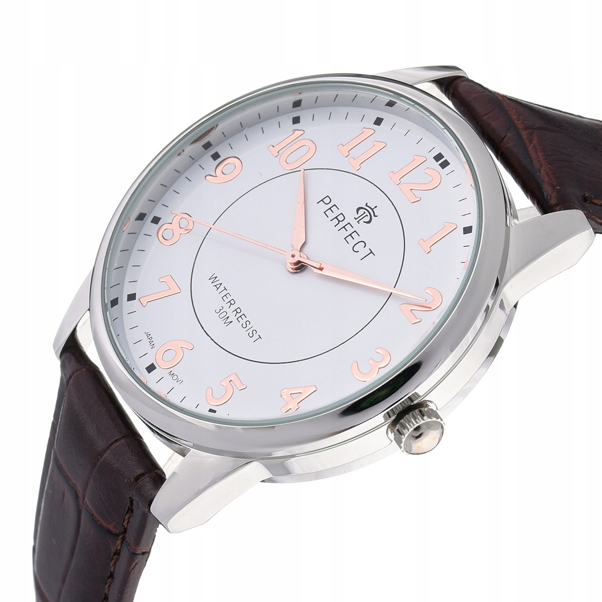 Analogowa tarcza w białym kolorze tworzy świetny kontrast z cyframi w kolorze miedzi – połączenie tych barw zapewnia czytelność tarczy, tak ważną podczas odczytywania aktualnej godziny.