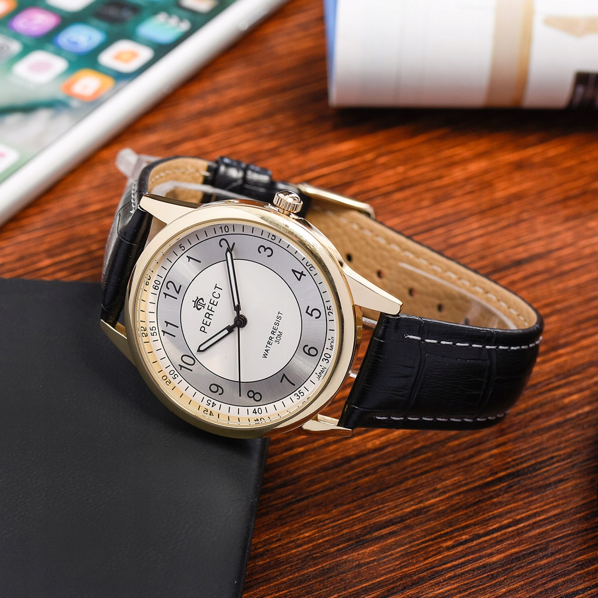 Zegarek męski klasyczny kwarcowy elegancki pasek skórzany analog Perfect